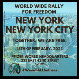 This Saturday February 18th New York Freedom Rally will be holding a peaceful rally outside of Pfizer Headquarters for World Wide Freedom Rally.